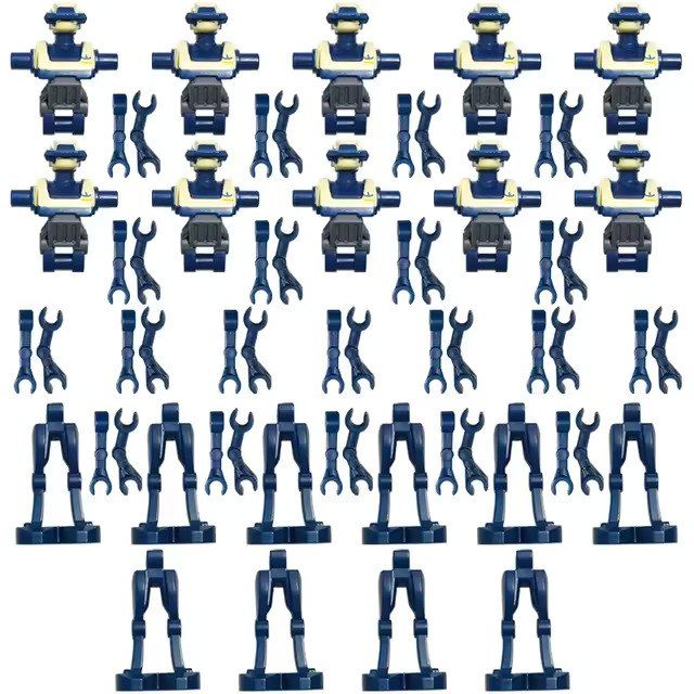 The delivery set includes 28 Different Special Forces Battle Building Block Robots with weapons and equipment. Each soldier has his own equipment (weapons). High quality of detailing of accessories and heroes of your small army will make the game unforgettable.